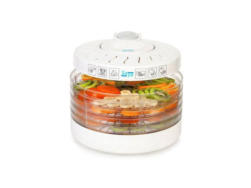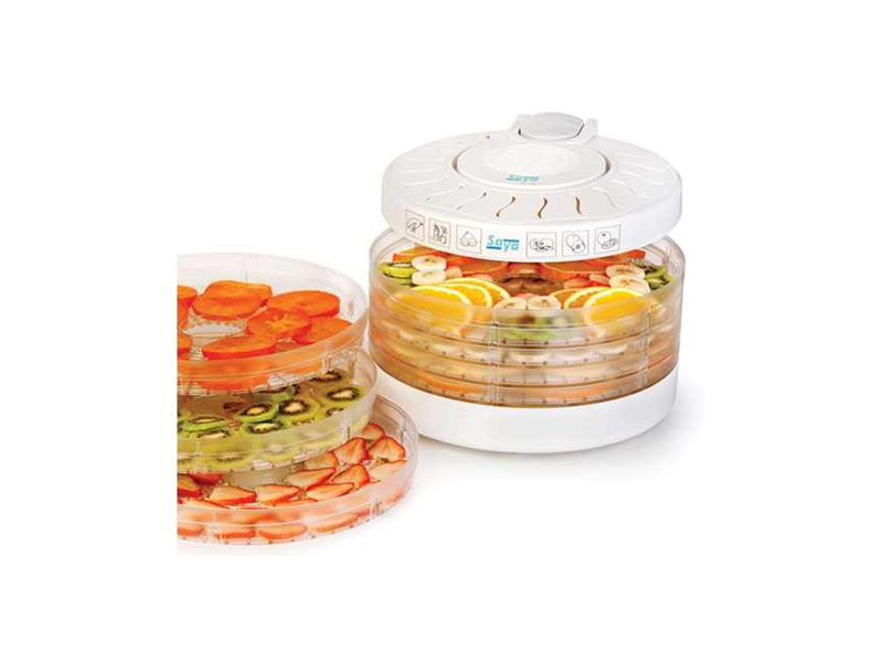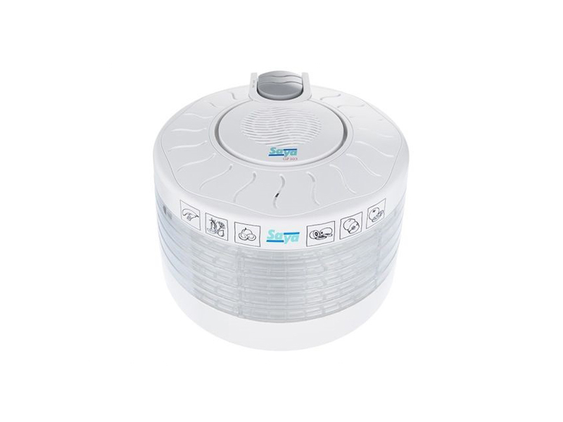 میوه و سبزی خشککن مدل «GP 103» محصولی کارآمد از شرکت «سایا» (Saya) است. این دستگاه وسیلهای پرکاربرد و جذاب برای دوستداران تنقلات سالم خانگی و ورقههای خوشطعم میوه است. میوه خشککن GP 103 از موتور 250 وات برخوردار است. زمان لازم برای خشکشدن کامل میوهها به قطر آنها بستگی دارد و این زمان متغیر است. بهترین قطر میوه برای خشککردن این دستگاه پنج میلیمتر است. پنج طبقهی مختلف برای این محصول در نظر گرفته شده است که اجازهی خشککردن میوههای مختلف را در حجم زیاد و به طور همزمان به کاربر میدهند. پنج سینی بزرگ دستگاه روی هم سوار میشوند و امکان چرخش 360 درجه و قابلیت جداسازی از بدنه را دارند. بهاینترتیب نظافت قطعات دستگاه آسان است. این سینیها مشبک هستند تا گرما بهخوبی میان آنها منتقل شود. میوههای خشک از تنقلات خوشمزه و سالماند که میتوانند جایگزین بسیار خوبی برای تنقلات ناسالم باشند.با استفاده از این دستگاه میتوانید برگههای میوه را با اطمینان از سلامت و بهداشت کامل آنها در محیط خانهی خود تهیه کنید. گفتنی است این محصول علاوهبر میوه، قابلیت خشککردن سبزیجات و گلها را هم دارد.
