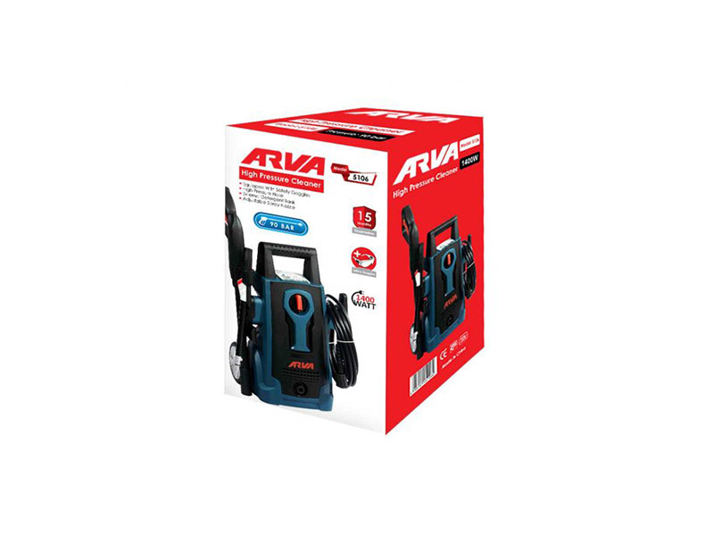 فشار آب خروجی دستگاه کارواش آروا ۵۱۰۶، ۹۰ بار است و مقدار ۵.۵ لیتر در دقیقه آب مصرف می کند. شلنگ این کارواش نیز از نوع فشار قوی است که جنس بسیار مرغوبی دارد. نازل آن قابل تنظیم در حالت های مختلف کف پاش، بادبزنی و تیز است.
