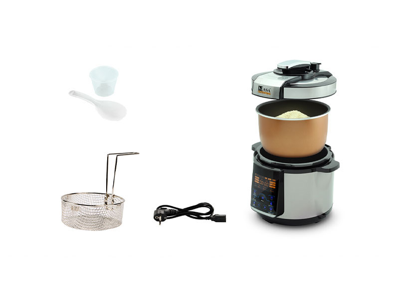 وجود کنترل پنل لمسی بزرگ به همراه صفحه نمایش LED کارایی آسان زودپز چند کاره 3076 را تضمین خواهد کرد. از امکانات مهم این زودپز میتوان به قابلیت گرم نگهدارنده و تایمر تاخیر و گرم کردن مجدد اشاره کرد. مخزن یا دیگ در زودپز ناسا الکتریک NS-3076 از جنس استیل ضد زنگ است و ظرفیت آن 5 لیتر برآورد شده که 75% از مخزن معادل 12 نفر ظرفیت دارد. یکی از خصوصیات کاربردی دیگر این زودپز، گیره نگهداری کفگیر و ملاقه است، که بر روی بدنه جا خوش کرده است. همچنین به منظور افزایش ایمنی دستگاه از سوپاپ اطمینان برای تخلیه بخار اضافی بهره گرفته شده است. توری سرخ کن، کفگیر و ملاقه پلاستیکی و پیمانه مدرج از جمله لوازم جانبی همراه زودپز ناسا الکتریک NS-3076 میباشند.