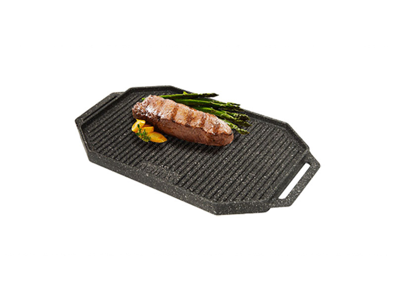 تابه چدن اصل،گریل دوطرفه مدل Napoli صفحه چدن دوطرفه مدل ناپولی دارای 8 ضلع و دو طرفه است که مانند ظروف چدن هم خانواده خود دارای ویژگی هایی از قبیل : قابل استفاده روی گاز خانگی،زغال و فر روکش نچسب تحمل دمای بالا تهیه خوراک با کیفیت و اضافه شدن یون آهن در هنگام پخت بدون نیاز به روغن در هنگام طبخ