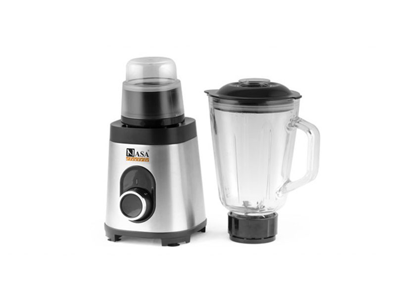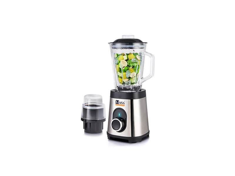 مخلوط کن و آسیاب ناسا الکتریک NS-1962 یکی دیگر از محصولاتی است که در گروه لوازم برقی آشپزخانه قرار دارد. این محصول امکان تهیه انواع نوشیدنی و اسموتی و دسر و پودر کردن و خرد کردن دانههای مختلف نظیر قهوه و گردو و پسته و بادام و انواع خشکبار و ... را برای شما فراهم میآورد. موتور قدرتمند تعبیه شده برای این مخلوط کن دارای توان 800 واتی میباشد و از قدرت و سرعت مناسبی بهره میبرد. قابلیت تنظیم سرعت در دو سطح 1 و 2 یا همان کم و زیاد را دارد، هر یک از این سرعتهای انتخابی بر روی عملکرد دستگاه تاثیر گذاشته و سرعت مخلوط کردن و آسیاب کردن مواد را افزایش یا کاهش میدهند. کافی است دکمه ولومی تعبیه شده بر روی بدنه بچرخانید و سرعت مورد نظرتان را انتخاب کنید. همچنین عملکرد پالسی که برای این مخلوط کن در نظر گرفته شده، امکان افزایش و بهرهوری از حداکثر کارآیی دستگاه را فراهم آورده است و برای یک لحظه از حداکثر قدرت موتور بهره میبرد.