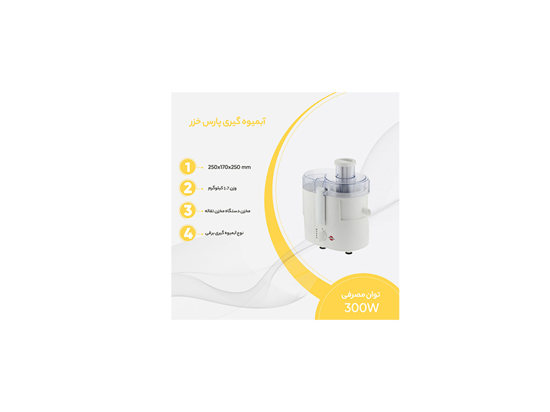 آبمیوه گیری پارس خزر تک کاره مانگو از انواع آبمیوه گیریهای تولیدی شرکت پارس خزر است. این دستگاه توسط متخصصان نیروی داخلی تولید گردیده است. رابط کاربری و سهولت استفاده خوبی دارد. از دوام و مقاومت بالایی برخوردار است. این دستگاه آبگیری تک کاره برای آبگیری انواع میوه نظیر سیب و گلابی و هویج و… عالی است. از میزان آبدهی بالایی برخوردار است. کیفیت این مدل بالاست و بسته به کیفیت از قیمت پایینی برخوردار است.