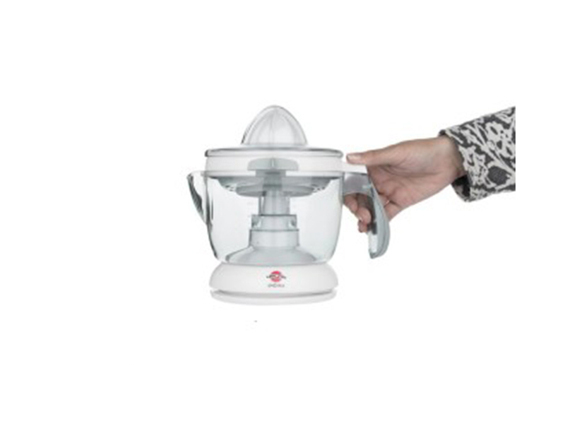این محصول لوازمی که برای گرفتن سریع و آسان آب مرکبات مورد نیاز هستند را دارد. مخزن آبمیوه با ظرفیت 1 لیتر کاربر را از استفاده از ظرفی مجزا برای جمعآوری آبمیوهی تهیهشده بینیاز میکند و دو سری بزرگ و کوچک امکان گرفتن آب مرکبات با اندازههای مختلف را فراهم میسازد. طراحی این دستگاه بهصورتی انجام شده که بتوان با توجه به سلیقهی کاربر میزان پالپی را که از صافی رد میشود تنظیم کرد. البته یکی از معایب قابل توجه سریها و صافی این محصول پلاستیکیبودن آنها است که در مقایسه با اجزای استیل دستگاههای مشابه دوام و زیبایی کمتری دارد. هر چند این ایراد را میتوان با توجه به قیمت دستگاه نادیده گرفت. محدودیت دیگر دستگاه نداشتن اهرم آبگیری است. برای گرفتن آب مرکبات با استفاده از این محصول لازم است کاربر با دست فشار لازم برای خارجشدن آب مرکبات را روی سری وارد آورد و این در مقایسه با آب مرکباتگیریهایی که دارای اهرم فشار هستند انرژی بیشتری را میطلبد. دستگاه ساده طراحی شده و از نظر ظاهری چیزی بیشتر از یک پارچ نیست که البته این خود مزیتی برای راحتی استفاده از دستگاه برای انتقال آبمیوه از مخزن به لیوان است. پایهی ضد لغزش مانع از جابهجاشدن دستگاه حین گرفتن آبمیوه میشود. درپوش ضد گرد و غبار یکی از اجزای این محصول است که به پاکیزه نگاهداشتن سری در زمانهایی که از دستگاه استفاده نمیشود کمک میکند. همهی قسمتهایی که نیاز به شستوشو دارند از دستگاه جدا میشوند و میتوان بدون نگرانی از بابت خطر برقگرفتگی آنها را شست.توان دستگاه نسبت به محصولات رقیب کمی ضعیف است اما این توان به اندازهای هست که بهخوبی برای تهیهی آبمیوه در آشپزخانههای خانگی کارا باشد. طول سیم دستگاه اندازهی مناسبی دارد و درنظرگرفتن محفظهای برای جمعکردن سیم به حفاظت از آن کمک میکند.
