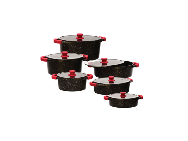 سرویس 12 پارچه مُنارک از محصولات جدید زرساب است که جنس بدنه آن از آلومینیوم آلیاژی (دایکاستی) است. ظروف دایکاستی به اشتباه در میان عامه مردم به چدن معروف شده است. حال آن که چدن واقعی آلیاژی از جنس آهن است. برای تهیه این ظروف مواد مذاب آلومینیوم آلیاژی را داخل قالب های فولادی ریخته تا فرم کلی ظروف را به خود بگیرند. حتی دستگیره های این ظروف هم در فرم قالب لحاظ می شود به همین دلیل ظروف دایکاست دستگیره های متصل به خود دارند. بدنه محصولات مُنارک از پوشش تمام گرانیت تولید شده است. روکش دستگیره های این محصول از جنس سیلیکون با کیفیت و با دوام طراحی شده است. از جمله ویژگی های مهم پوشش گرانیت ، عدم وجود مواد مضر و سمی یا شیمیایی است. در نتیجه دیگر نگران سلامت غذایی که در این ظروف پخته میشود نخواهیم بود. به همین دلیل میتوان گفت که قابلمههای گرانیتی یکی از سالمترین ظروف پخت غذا هستند. یکی دیگر از مهمترین مزایای پوشش گرانیت این است که حرارت را به صورت یکپارچه منتقل کرده و در نتیجه احتمال سوختن غذا در آنها به شدت کاهش مییابد.
